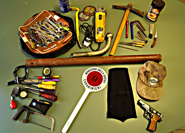 Gli arnesi da scasso e la pistola giocattolo rinvenuti [...]